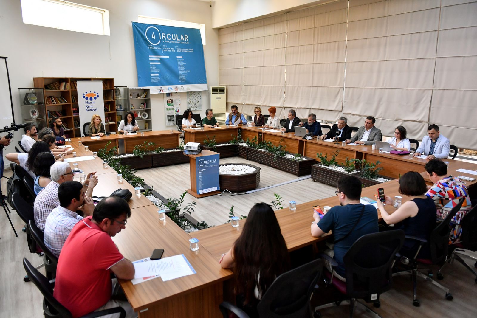 Mersin Kent Konseyi’nde gerçekleştirilen lansmana; Mersin Büyükşehir Belediyesi Genel Sekreter Yardımcısı Serdal Gökayaz, Büyükşehir Belediyesi Başkan Danışmanı İbrahim Evrim, MESKİ Genel Müdürü İrfan Korkmaz, Kültür ve Sosyal İşler Dairesi Başkanlığı Koordinatörü ve Opera Sanatçısı Bengi İspir Özdülger, Mersin Kent Konseyi Başkanı Ayferi Tuğcu, D5 Sanat Ortamı, İçel Sanat Kulübü, Kültürhane ve Sivil Toplum Kuruluşlarının temsilcileri katıldı. Lansmanda konuşmacılar 2 gün sürecek etkinliklerin önemi ve içeriğine dair bilgiler verirken, daha önceki Circular Çevre ve Sanat Sergisi etkinliklerinden kesitler ve tarihsel gelişimi slayt gösterisi ile sunuldu.