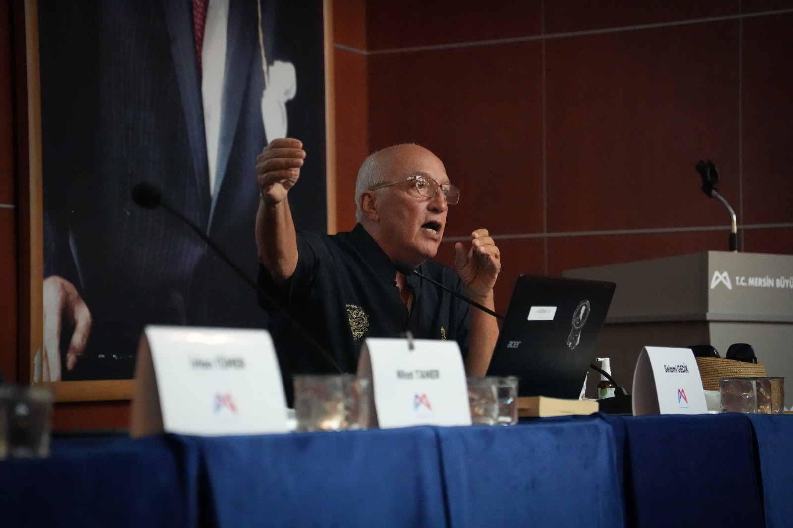 1950–1970 yıllarında Mersin’de yaşam, ticari hayat ve denizle ilişkiler üzerine odaklanan etkinlikte; kentin yakın tarihine tanıklık etmiş üç değerli isim — İrfan Tümer, Nihat Taner ve Selami Gedik — deneyim ve anılarını paylaştı. Moderatörlüğünü arkeolog Başar Akça’nın üstlendiği söyleşi, dinleyicileri hem geçmişin Mersin’ine götürdü hem de kentin sosyoekonomik ve kültürel dönüşümüne dair canlı bir hafıza aktarımı sundu.